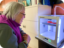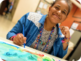 She really struggled with remote services in the beginning. She mostly used echolalia and after several months she is finally using expressive language. At the program she often hesitated to participate in group activities. During remote services she has blossomed. She enjoys receiving packages for self-guided activities and excitedly shares her arts and crafts projects with her staff. She has really benefited for the undivided attention she gets from staff during remote sessions.